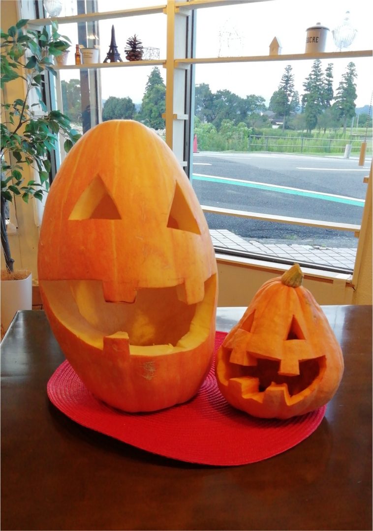 ハロウィン用(本物です)の特大かぼちゃをいただいたので、早速おばけ仕様に制作してみました!