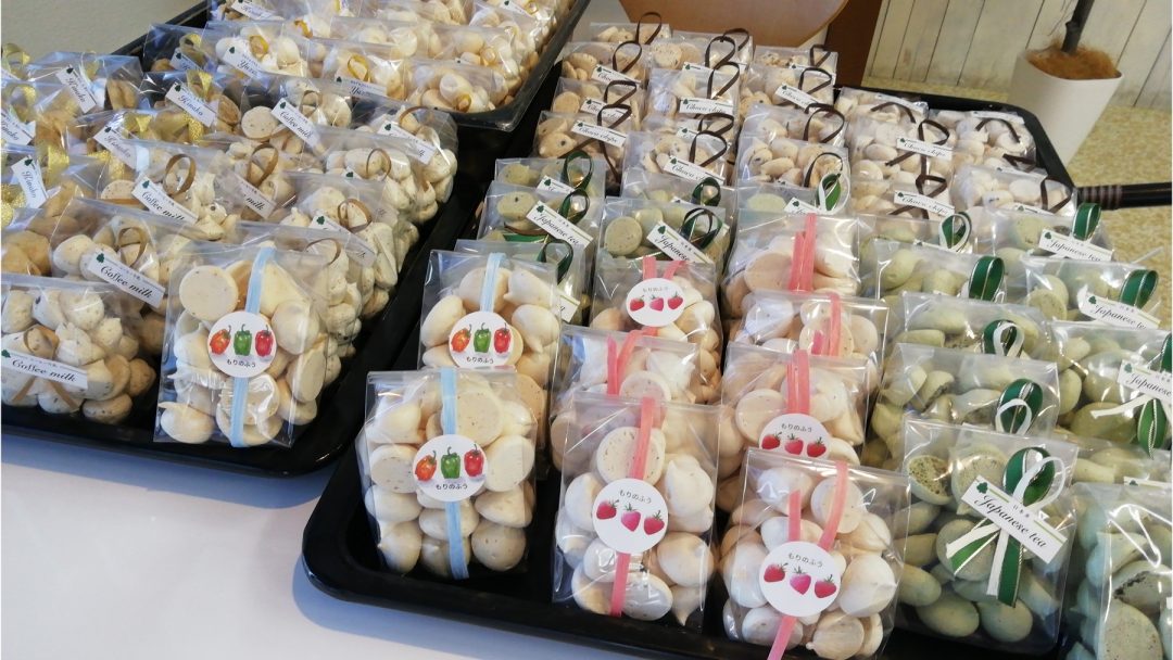地元黒大豆のきな粉メレンゲ、抹茶とビターチョコのメレンゲ、県内産のゆずピール味や、西都市産のピーマン味のメレンゲなど、最近はお菓子の製造室で楽しみながら試作の日々です。